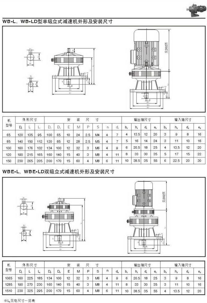 WB-L . WB-LD型單級立式減速機外型圖,安裝尺寸WBE-L . WEB-LD雙級立式減速機外型圖,安裝尺寸