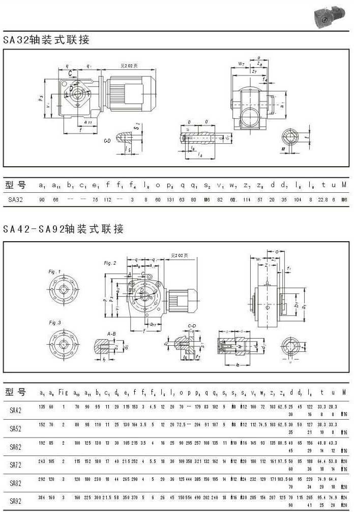 SA32軸裝形式聯(lián)結(jié)參數(shù)圖表SA42-SA92軸裝形式聯(lián)結(jié)參數(shù)圖表
